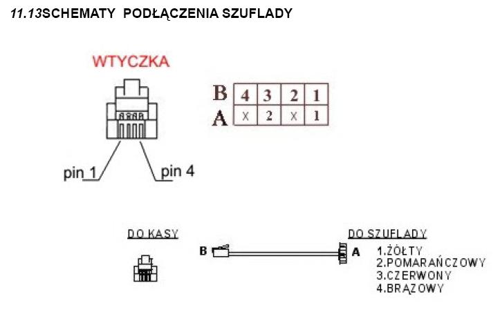 Schemat kabla kasy fiskalnej Elemis kasa - szuflada